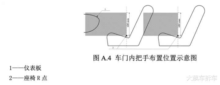 每个车门(不包括背门)应配备至少一个机械释放车门内把手。单个车门配备多个机械释放车门内把手时,独立操作任一车门内把手应能够开启车门。
