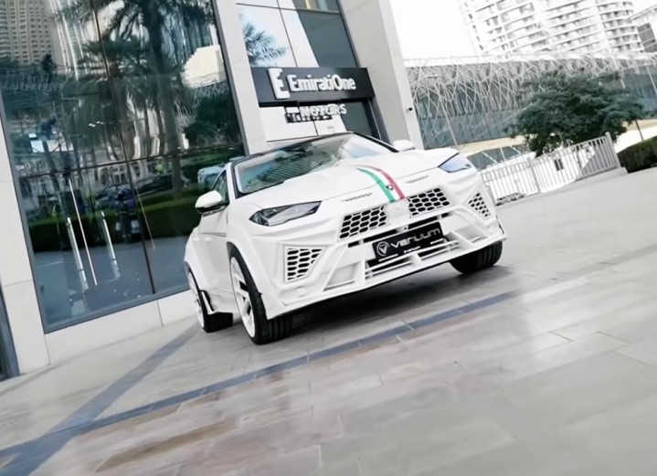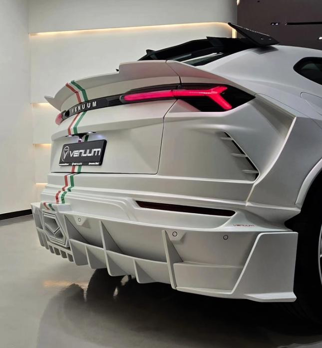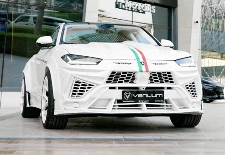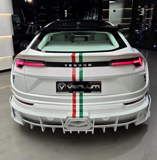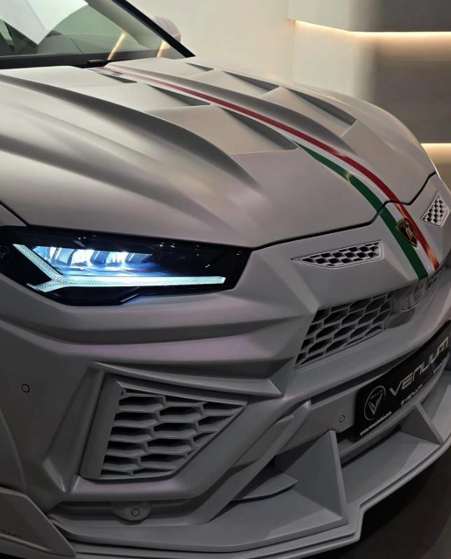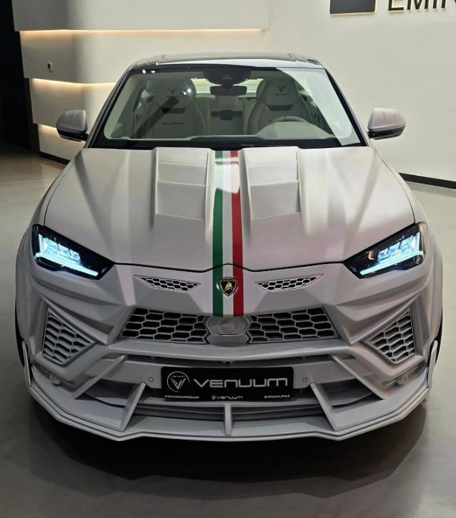 Vanuum将其主打为意大利版车型,车头、车尾以及后杠带有意大利国旗条纹图案,成为白色车身中色彩视觉重心。这款车与原厂Urus有了明显区别,车身覆盖件几乎全被更换,车头设计大面积通风口,为发动机提供散热与冷却空间。