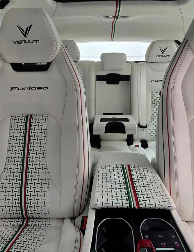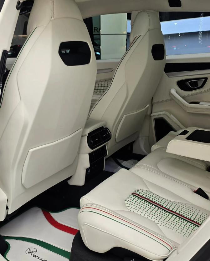 车内与车外一样的风格,到处都覆盖着白色皮革。在细节之处,意大利国旗条纹始终提醒着我们这款车并非简单的Urus,而是高定版“Furioso”。Vanuum Black宣称要重新定义SUV的主导地位,将强劲而又纯粹的动力与奢华优雅的风格、无比刺激的驾乘体验以及无与伦比的精致感融为一体。